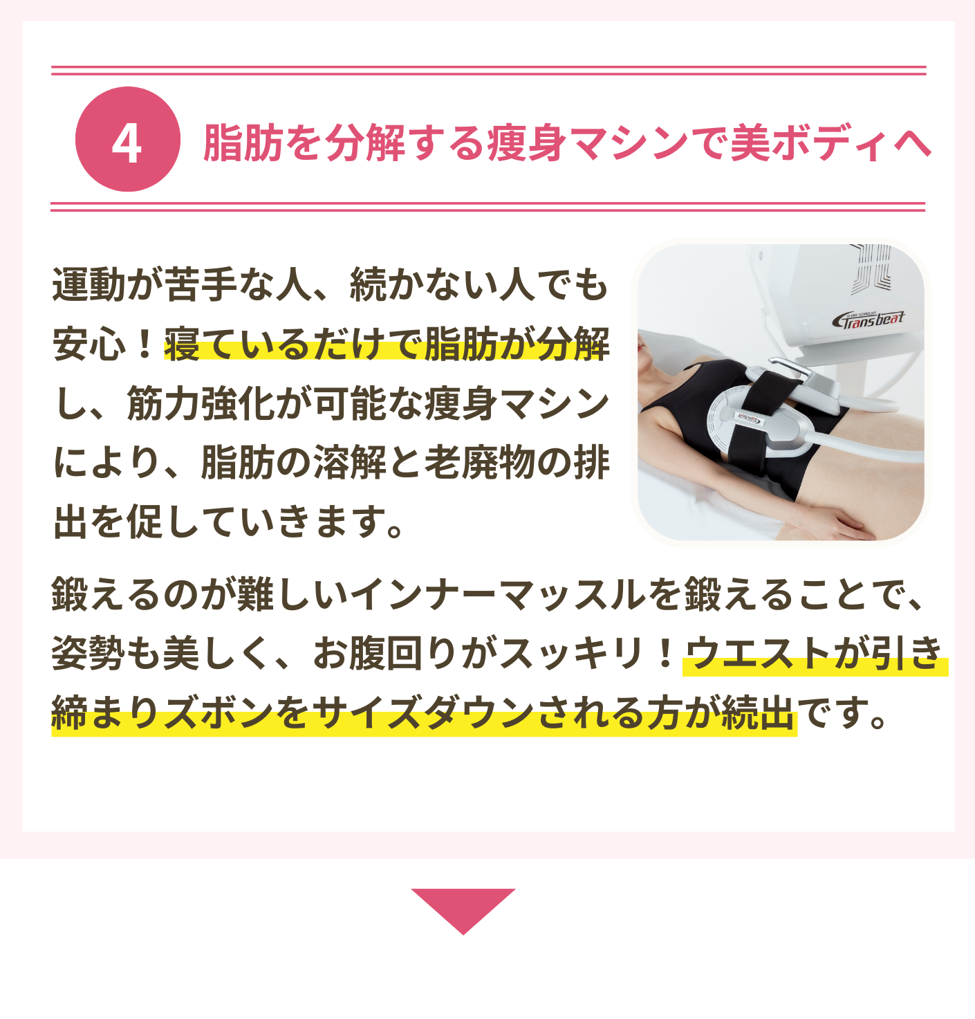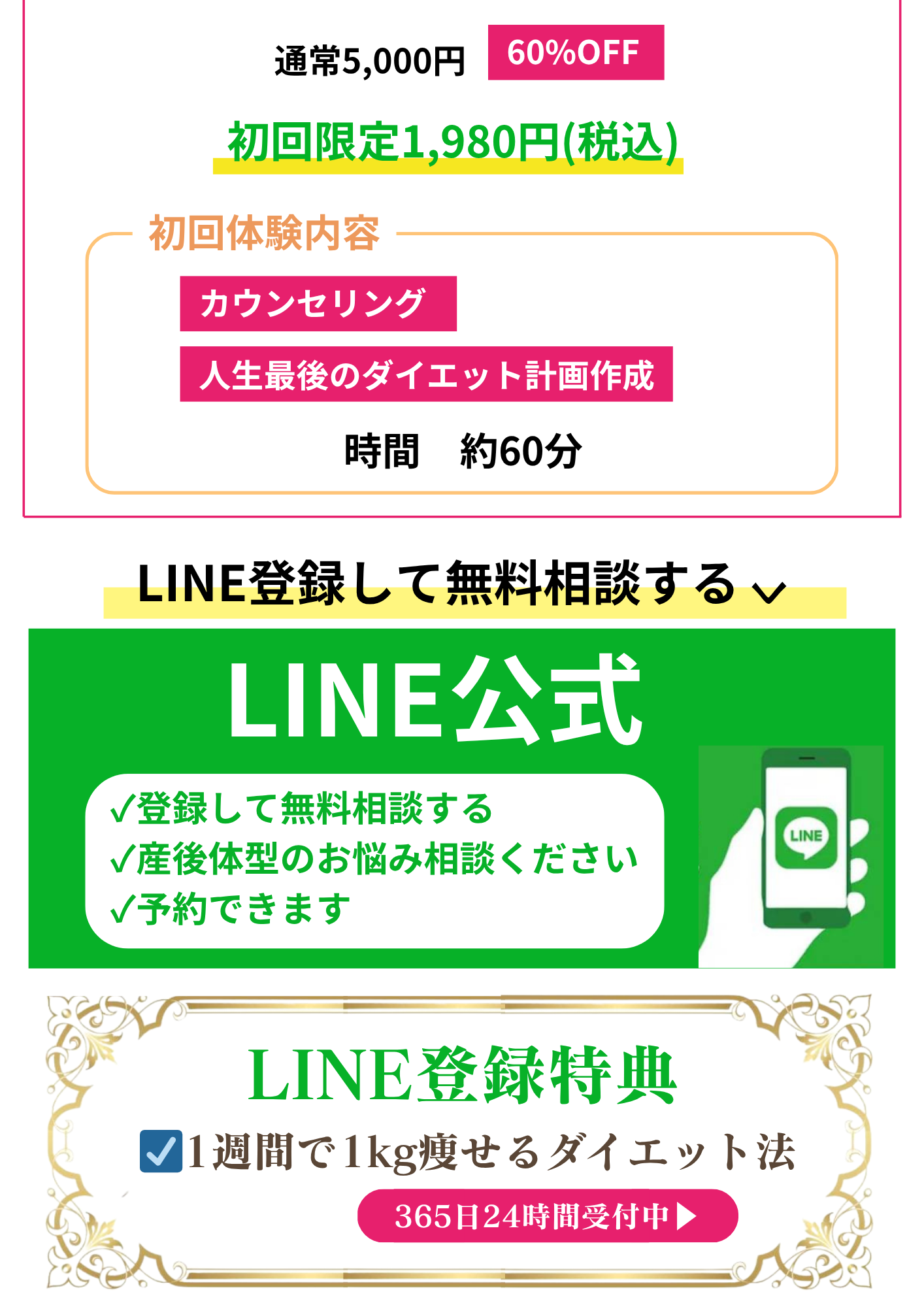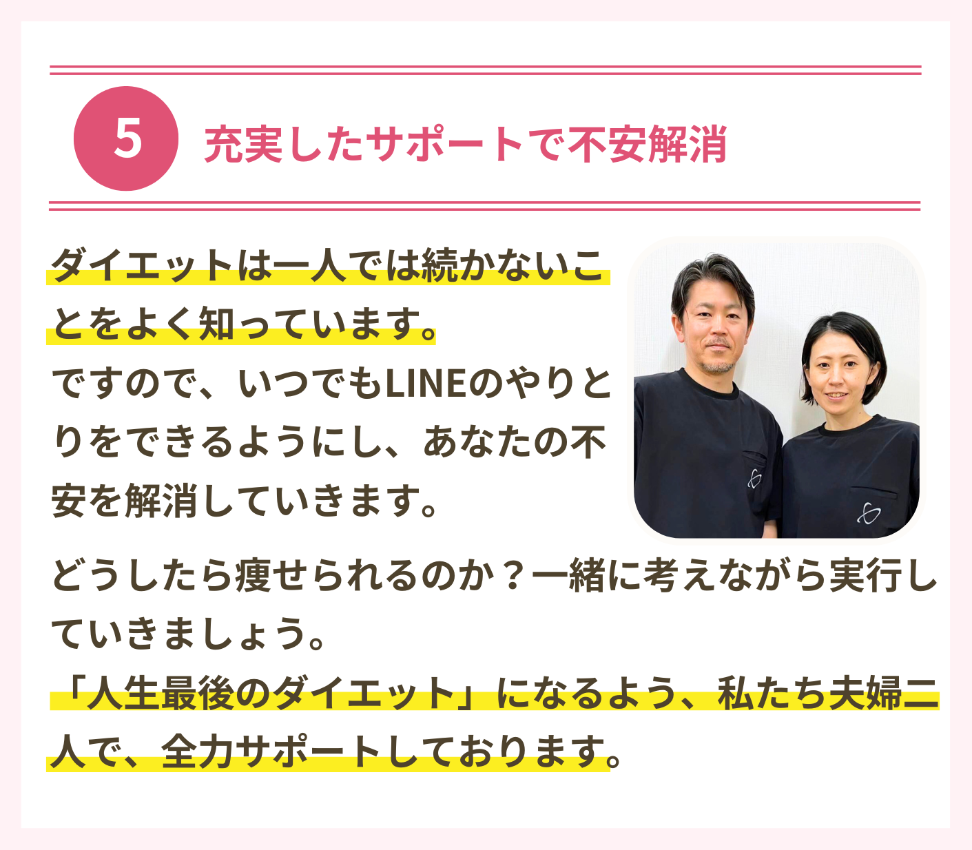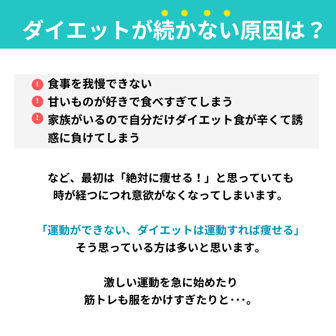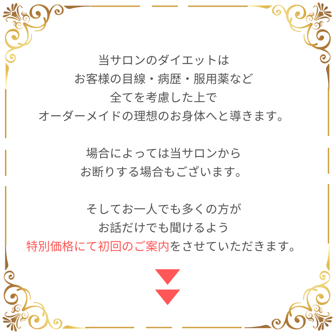 お一人ずつのお体の状態や生活スタイルに合わせて痩せやすくリバウンドしないための知識やコントロールの方法をお伝えしております。